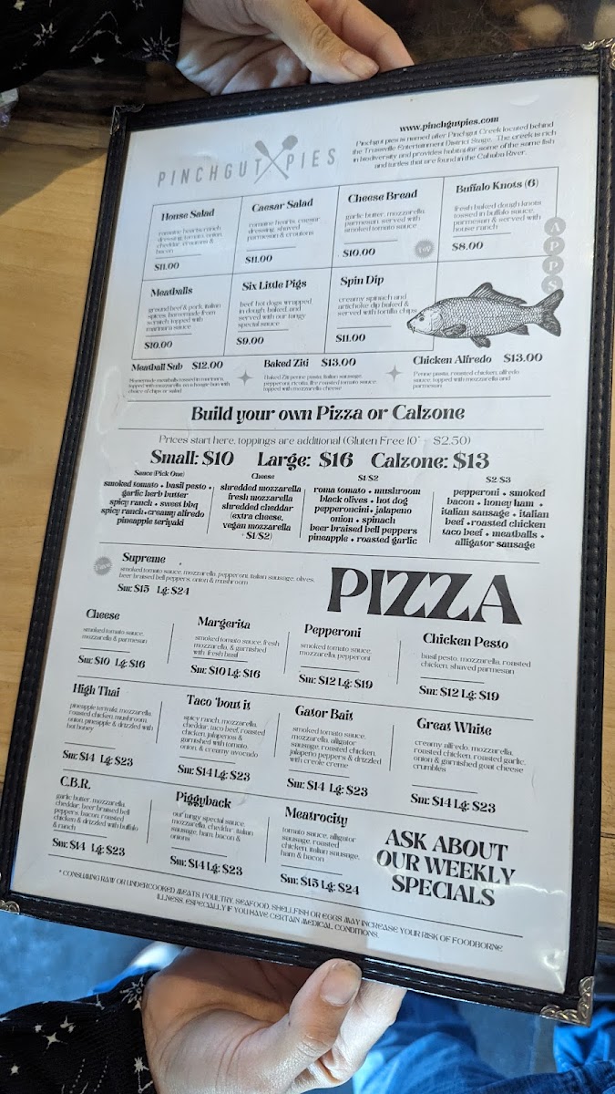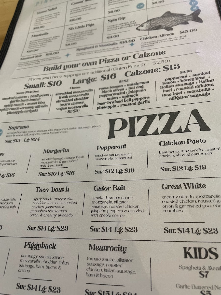 smoked tomato sauce, mozzarella, alligator sausage, roasted chicken, jalapeno peppers & creole creme