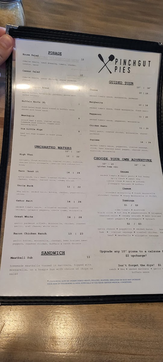 Build your own hand tossed pizza from scratch. Build you own pizza from scratch! Pick a base sauce, Add your cheese, Add up to 6 toppings, enjoy.